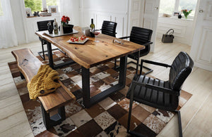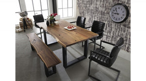 This modern bench is perfect to accompany your current dining table or newly purchased one. The clean sleek design makes for a neutral seat in any space. A rustic touch adds a hint of coziness and warmth to your dining area.