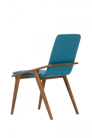 This modern dining chair is perfect to accompany your current dining table or newly purchased one. The clean sleek design makes for a colorful chair in any space. Colored fabric adds a hint of sophistication and taste to your dining area. This fabric chair could easily work as an accent chair in any living room. With the versatility of this chair, you will never run out of room to sit.