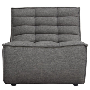 This sectional helps create a comfortable and stylish living area that will be the heart of your home. Scooped seat design ensures a lasting comfortable seat. Finished in gray polyester fabric. With the modular component, the collection allows you to add customization to the seating to fit your living space and still have plenty of seating for any occasion or gathering.