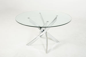 This modern dining table is a simple and sleek addition to your dining space. With the glass top, messes are easily cleanable and gives a hint of sophistication to your dining room. The round table is perfect for intimate gatherings with family and friends. With the overall neutral color, this dining table can easily be dressed up or down.