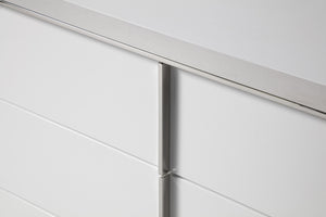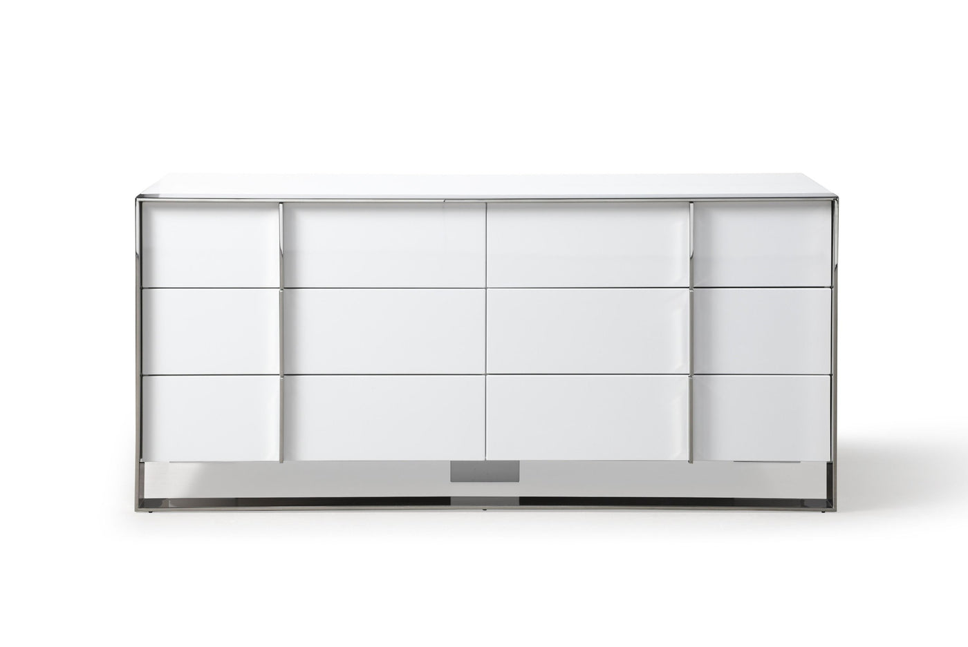 • Finish: White High Gloss & Polished Stainless Steel on Nightstand, Dresser & Mirror for a modern finish