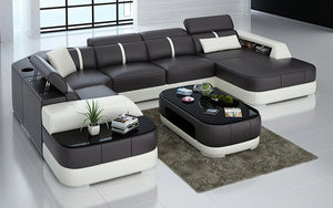 This smart sofa is absolutely beautiful, so elegant and sophisticated. It makes your space look very classy very well-made love the nice large size and to top it off the matching coffee table sets it off very nicely!!
