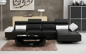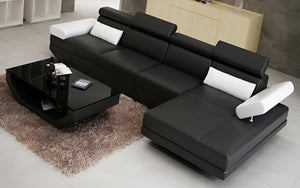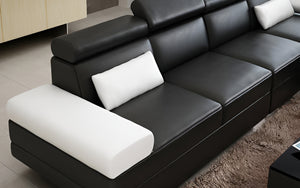 The sectional is small enough to fit in well with my small living room. It is completely made of faux leather and exactly pictured. It is decent for a large family use, so that is why I decided to purchase it. Unfortunately, I received a defective product, but the seller was willing to replace product. Instead, I requested for a full refund. Seller returned my full refund and also generously cancel return shipment. The refund and cancellation process took me a month.