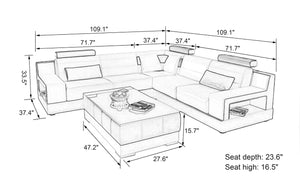 This smart sofa is absolutely beautiful, so elegant and sophisticated. It makes your space look very classy very well-made love the nice large size and to top it off the matching coffee table sets it off very nicely!!