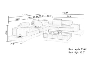 The Halsey Modern Leather Sectional with Console Table is a stylish and chic addition to your living space. This modern sectional is handmade with genuine Italian or bonded leather and comes in 10 distinct colors to choose from. Each top headrest is adjustable, and a small console is added to create space for drinks, snacks and remotes. The console table is perfect for storing your favorite snacks and drinks while you relax and watch a movie. The sectional also has an additional bed function, making it great for movie nights with the family or space for unexpected guests. Cup holders and USB ports are recommended for larger families to optimize maximum enjoyment. To complete the look of your living space, we recommend adding the armless chair and coffee table.