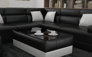 This smart sofa is absolutely beautiful, so elegant and sophisticated. It makes your space look very classy very well-made love the nice large size and to top it off the matching coffee table sets it off very nicely!!