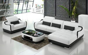 The Amir Mini Modern Leather Sectional with Chaise is a stylish and comfortable seating option for modern living spaces. Upholstered in top-grain or bonded leather and built on a sturdy hardwood frame, it features a chaise lounge perfect for reading, watching TV, or napping. Its sleek design and high-quality materials make it a must-have for anyone who loves modern furniture.