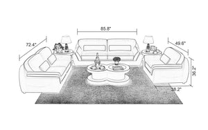 This smart sofa is absolutely beautiful, so elegant and sophisticated. It makes your space look very classy very well-made love the nice large size and to top it off the matching coffee table sets it off very nicely!!