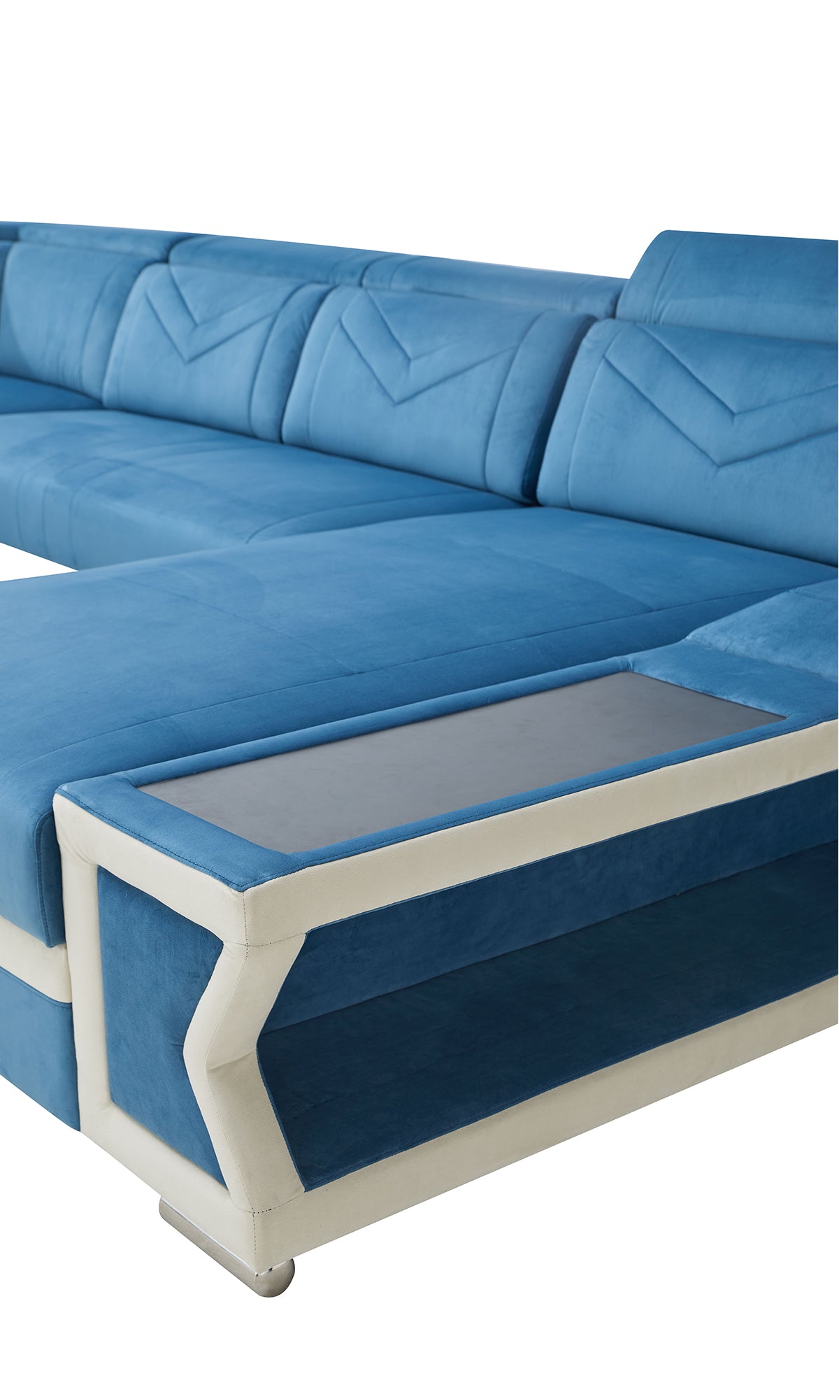 The Boancy Led Modern Sectional with Side Storage is handmade and available in Fabric, Bonded Leather, or Top Grain Italian Leather, This couch is sleek and suits any modern living space. Its modular design can be customized to a configuration that fits your unique space - whether it is your living room or family room. This design features two side light, with the side shelving. Armrests are included to hold drinks and personal items. Each top headrest is adjustable. Choose your configuration left hand facing or right-hand facing chaise to customize to your desired design. This sleek, modern sectional is a must have for every contemporary home. To complete the look of your living space we recommend adding the armless chair and coffee table. Cup holders and USB ports are recommended for larger families to optimize maximum enjoyment. An additional bed function makes a great movie night with the family or space for unexpected guests. With the generous size of this couch, family and friends will gladly socialize in comfort.