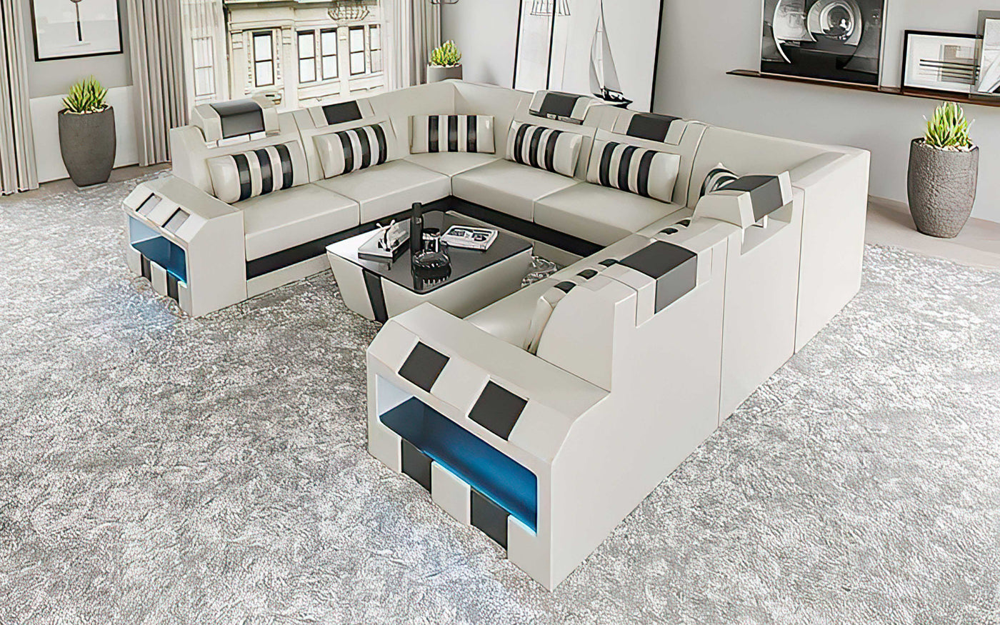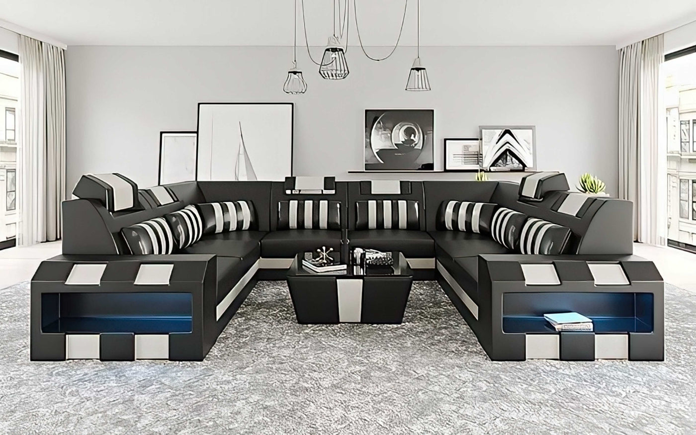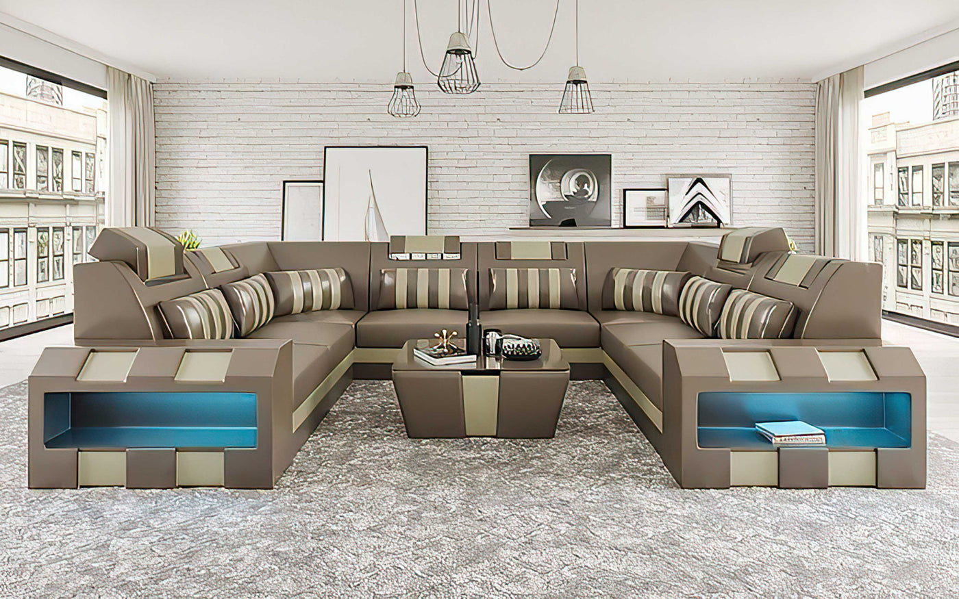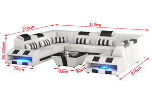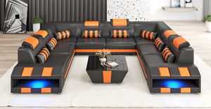 Cosmo XL U shape Modern Leather Sectional with Led Light
