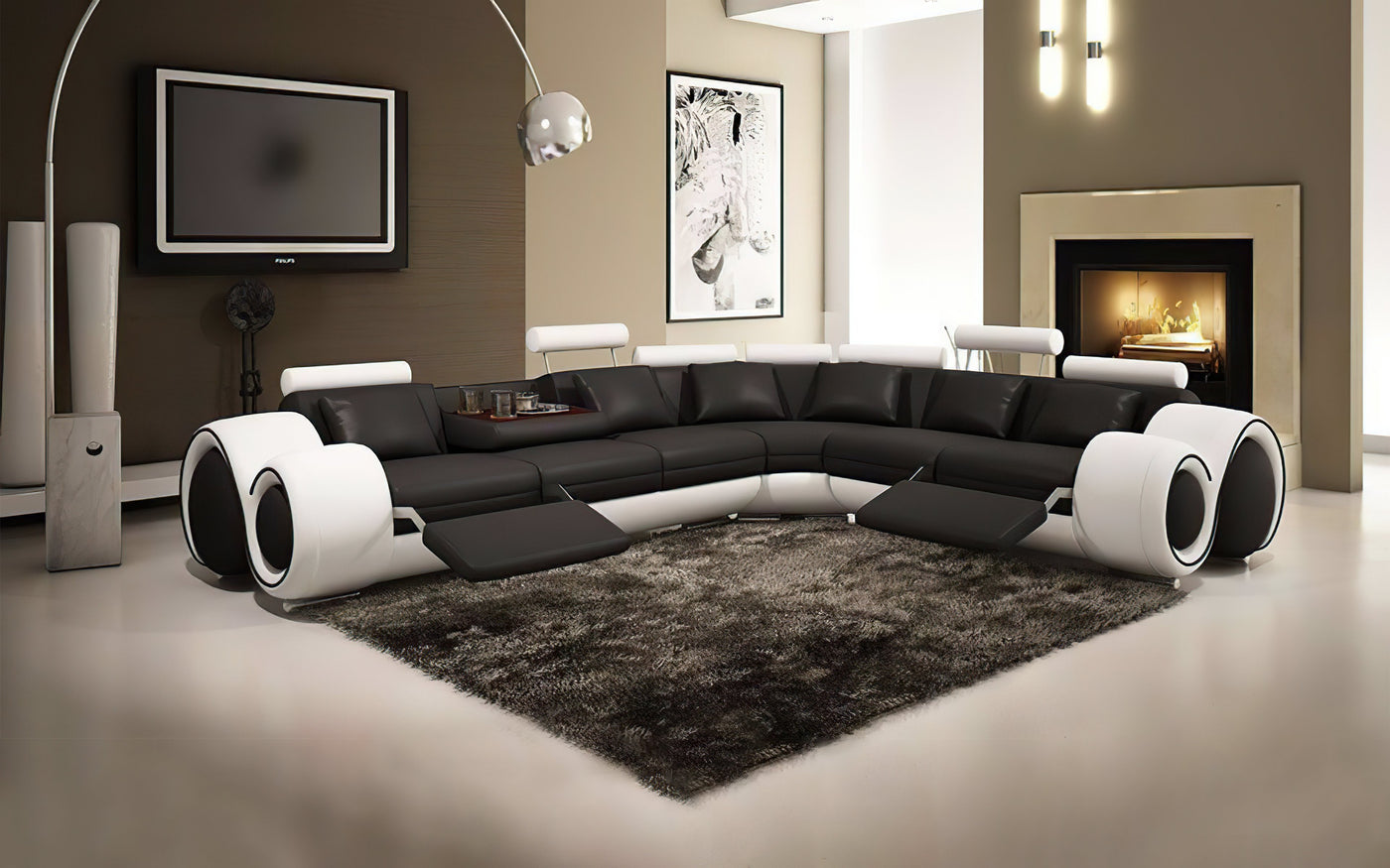 Daily Deal Bouie Leather Sectional with Adjustable Footrest | White&Black